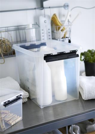 Műanyag tárolódoboz, 14 liter, fekete fogantyúkkal, SMARTSTORE "Classic 11", átlátszó