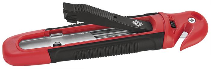 Univerzális kés, 18 mm, fóliavágóval, WEDO, "Safety" piros/fekete