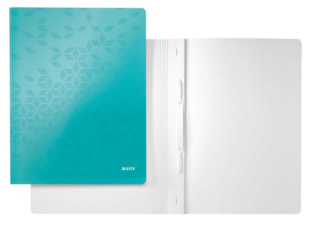 Gyorsfűző, laminált karton, A4, LEITZ "Wow", jégkék
