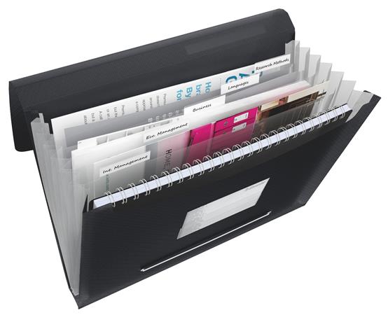 Harmonikamappa, A4, PP, 6 rekeszes, ESSELTE "Vivida", fekete