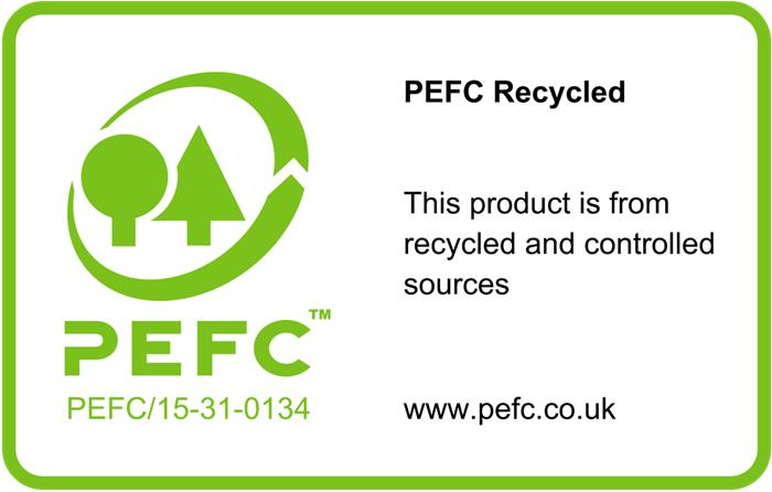 -PEFC RECYCLED minősítéssel rendelkeznek, és minősített, megújuló és felelős erdőgazdálkodásból származnak
