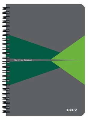 Spirálfüzet, A5, kockás, 90 lap, PP borító, LEITZ "Office", szürke-zöld