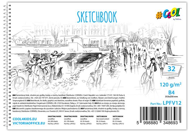 Vázlatfüzet, famentes, B4, spirál, 32 lap, COOL BY VICTORIA