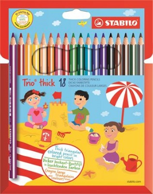 Színes ceruza készlet, háromszögletű, vastag, STABILO "Trio thick", 18 különböző szín
