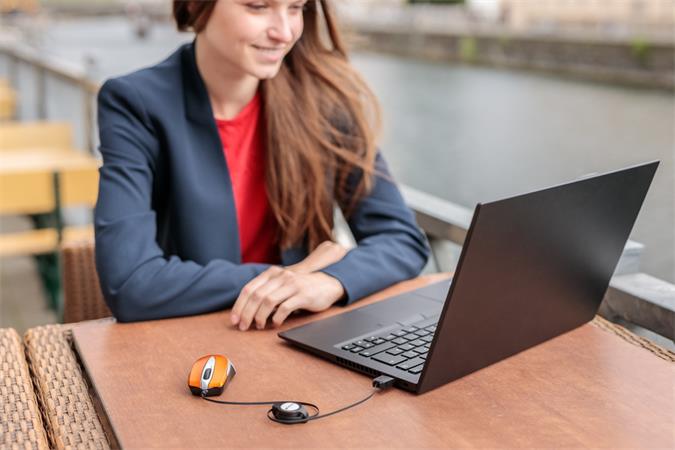 A visszahúzható USB-kábel és hordozható kialakítás miatt a Go Mini utazó optikai egér könnyen elfér akár zsebben vagy a laptop táskában.