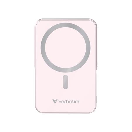 Power bank, mágneses (vezeték nélküli), 10.000mAh, VERBATIM "Charge n Go", rózsaszín
