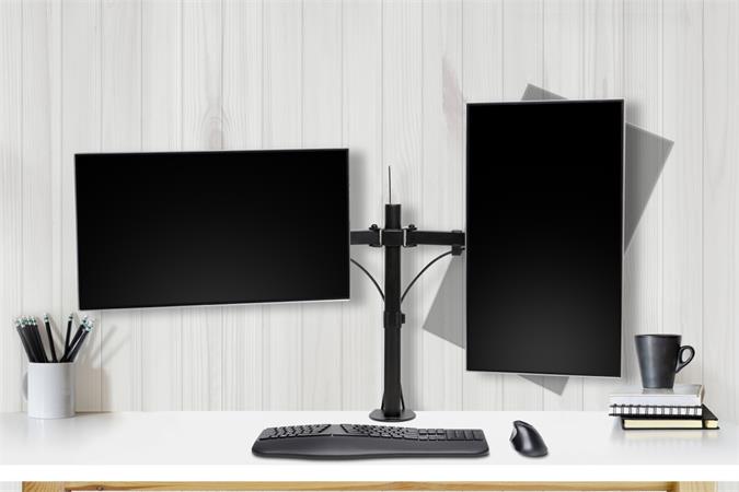 A SmartFit® segítségével egyszerű a megfelelő magasság megtalálása. -lehetőség van a monitor fekvő- illetve álló tájolásba állítására -±45° -ban állíthaó a dőlésszög -a kihúzható kar segítségével könnyedén állítható a monitor távolsága -teherbírás karonként: max 8 kg -mindkét karra max. 24"-os monitor is rögzíthető -kábelkezelő rendszerrel ellátva