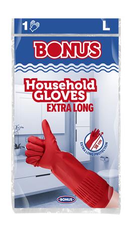 Gumikesztyű, háztartási, latex, extra hosszú, 38 cm, L méret, BONUS, piros