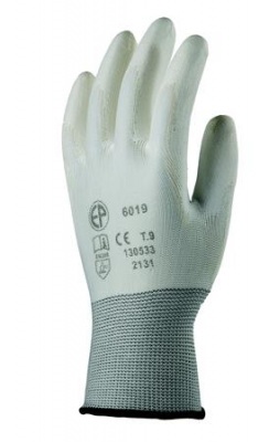 Tenyéren fehér poliuretánnal mártott. Fehér precíziós kesztyű